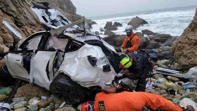 В США врач съехал в обрыв с семьей на автомобиле Tesla