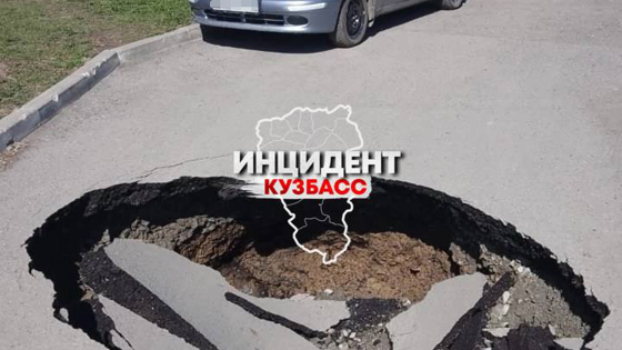 Огромная дыра в асфальте образовалась на глазах кемеровчанина