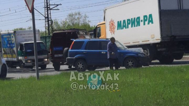 В Новокузнецке днем 23 мая столкнулись грузовик сетевого магазина и легковой автомобиль. Внедорожник Honda CR-V въехал в бок грузовика, разбив бампер. О пострадавших не сообщается.