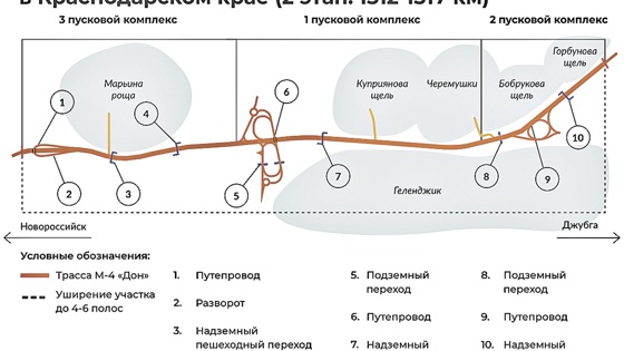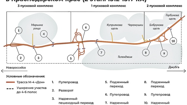 Отрезок дороги, на котором провели реконструкцию, расположился от кольца на въезде в город до села Марьина Роща. Там же водителям стали доступны все съезды транспортных развязок в районе "Голубой бухты" и кольца на Геленджикском проспекте (бывшая улица Луначарского).