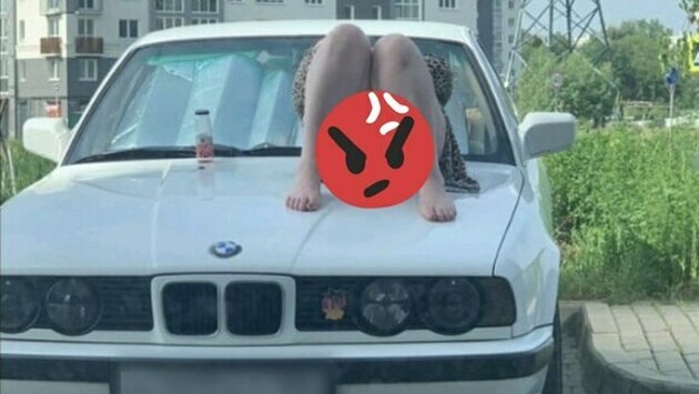 Девушка настойчиво просила их увезти её на море. Желающих не оказалось, тогда незнакомка прилегла на капот одного из автомобилей, припаркованных во дворе.