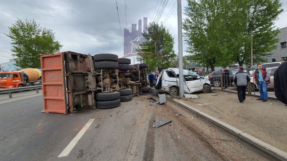 Последствия ДТП с 12 авто и КамАЗом в Красноярске попали на видео