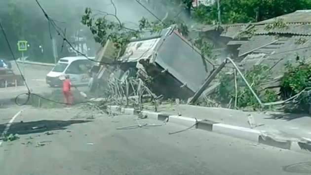 В Ялте на улице Блюхера КамАЗ выехал за пределы проезжей части и врезался в постройку абонентского отдела местной коммунальной компании. Причиной дорожно-транспортного происшествия стал отказ тормозов.