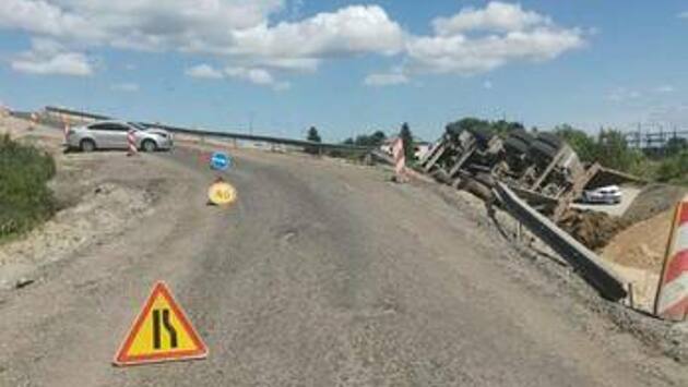 Авария произошла накануне в 11:30. 20-летний водитель на грузовике MAN поднимался на строящийся участок Северного обхода, но потерял контроль над управлением. Песковоз откатился назад, врезался в Ford и опрокинулся. 43-летний водитель легковушки получил травмы.