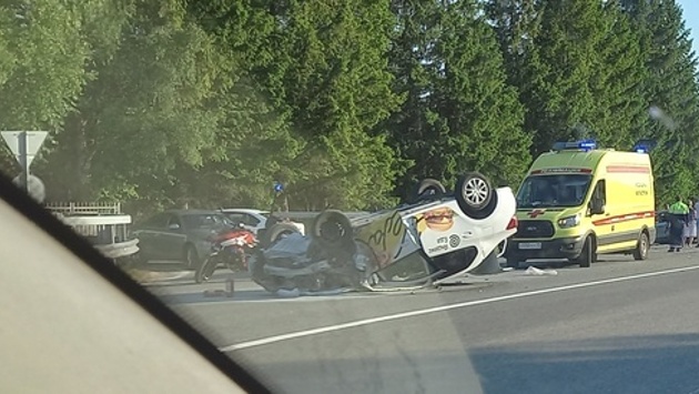 Об аварии стало известно в среду, 7 июня, около 18:00. «Водитель такси отвлёкся, машина перевернулась, пассажирка убежала на рейс. Водителя увезли в больницу», — прокомментировал калининградец.