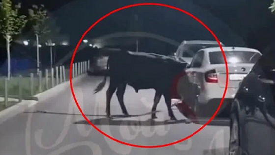 Животное агрессии не проявляло, но, вероятно, хотело играть или у него чесались рога, поскольку бык начал чесать их об припаркованные автомобили. Инцидент произошел в минувший четверг, 8 июня, и попал на камеры нескольких мобильных телефонов. Приключения бычка потом выложили в сеть.