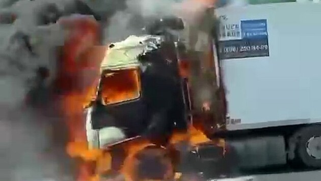 Грузовик переехал своего водителя на МКАД и попал на видео
