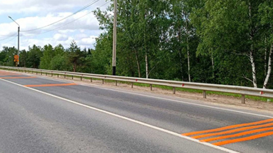 Шумовая полоса уже появилась на 74 км автодороги Р-132 «Золотое кольцо», где отмечено большое число аварий с тяжкими повреждениями и жертвами. Инициатива принадлежит Госавтоинспекции, которая внесла предложение в Упрдор «Холмогоры» весной 2023 года.