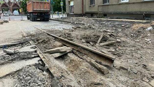 По плану, технический проезд по Суворова должны открыть в конце августа. Пока подрядчик немного опережает график.