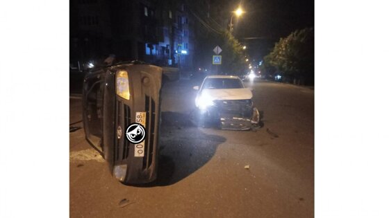 Столкновение произошло около 23:00. После удара одна из машин, «Лада», перевернулась. У второй разбита передняя часть.