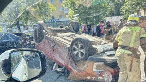«Автомобиль "Лада-Калина" под управлением женщины направлялся на выезд из города, когда при выполнении поворота налево не предоставил преимущество автомобилю "Рено-Дастер", двигающемуся навстречу в прямом направлении. От удара "рено" перевернулся на крышу и задел два автомобиля марок "Тойота" и "Мазда"», — рассказали в отделе ГИБДД по г. Вологде.