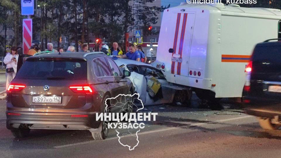Четыре автомобиля и автобус МЧС попали в ДТП на улице Кемерова