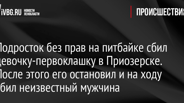 Подросток без прав на питбайке снес девочку-первоклашку в Приозерске. После этого его остановил и на ходу сбил неизвестный мужчина