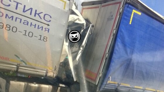 На фото, опубликованных в соцсети «ВКонтакте», видно, что в закрытый прицеп врезалась фура - с такой силой, что кабину сплющило.