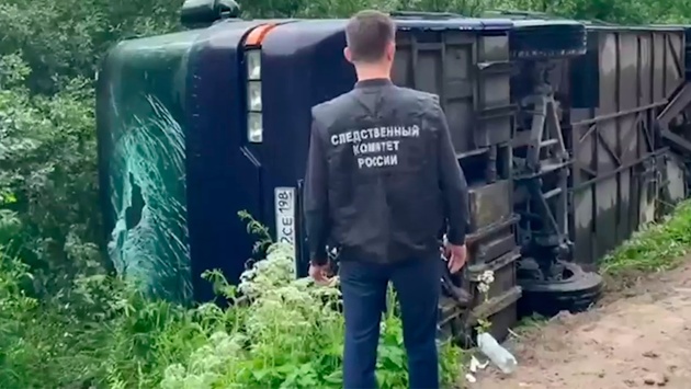 СК опубликовал видео опрокинутого туристического автобуса в Карелии