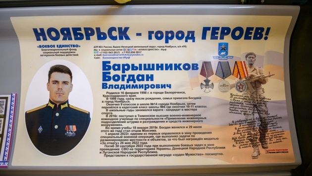 В городе Ноябрьске (ЯНАО) в муниципальных автобусах появились памятные уголки, посвященные подвигу героев, погибших в годы Великой Отечественной войны, военных конфликтах и зоне СВО. Они организованы по инициативе общества ветеранов боевых действий.