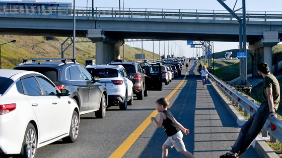 Сотрудники МЧС оказывают помощь попавшим в пробку на Крымском мосту круглосуточно
