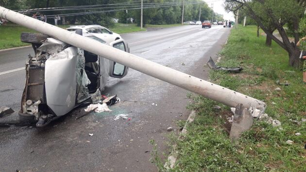 В Челябинске водитель легковушки наехал на бордюр, после чего врезался в столб и опрокинул его. Как сообщает ГИБДД города, ДТП произошло около 20 часов пятого июля по адресу: улица Хохрякова, 20. Водителю и двум пассажирам была оказана медицинская помощь.