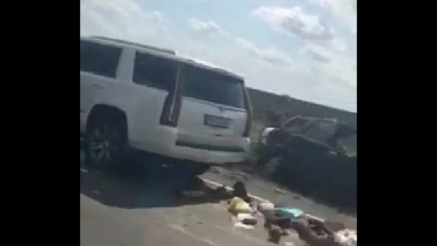 Судя по кадрам, "Тонар" проломил межполосное дорожное ограждение на большом протяжении и перевернулся. Автор видео отметил, что водитель смог выбраться из погнутой кабины.