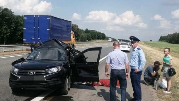 По предварительным данным, легковушка стояла на обочине. Машину, по неизвестным пока причинам, снес грузовой автомобиль.
