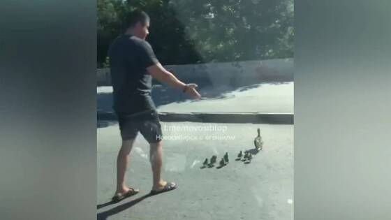 В Новосибирске водитель перевел уток через дорогу и попал на видео