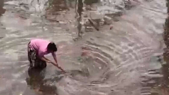 В соцсетях восхитились женщиной, которая расчищала ливневку от мусора в затопленном Туапсе