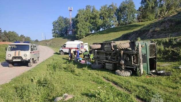 Грузовик с 14 неорганизованными туристами перевернулся в селе Элекмонар Чемальского района Алтая. Об этом сообщает главное управление МЧС по республике у себя в Telegram-канале.