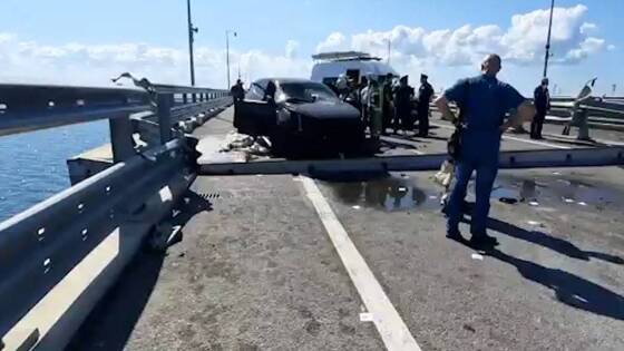 По данным Национального антитеррористического комитета, мост атаковали два украинских надводных беспилотника. Взрывом оказалось повреждено дорожное полотно в районе 145-й опоры, было приостановлено движение поездов и работа Керченской паромной переправы. В результате теракта пострадал ребенок, который направлялся вместе с родителями в Крым из Белгородской области. Девочку доставили в реанимацию, ее родителей спасти не удалось.