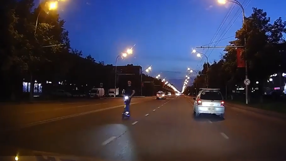 Во вторник, 18 июля, автомобилисты заметили мужчину на электросамокате, который ехал навстречу машинам по улице Кирова. Инцидент попал на запись видеорегистратора около 22:15.