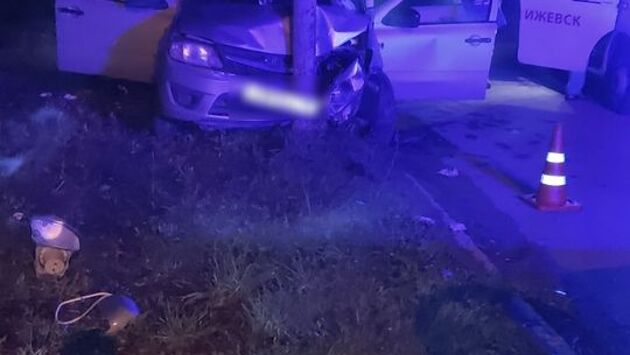 Ижевск. Удмуртия. «Лада Гранта» въехала в столб у дома №19 на улице Ворошилова в Ижевске. Об этом сообщает 1 отдел УГИБДД МВД по Удмуртской Республике.