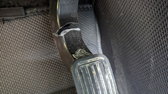 Инцидент произошел с Tesla Model 3 в «дальнобойной» версии Long Range 2021 года выпуска. На фотографии видно, что педаль газа треснула посередине и будто может отвалиться в любой момент. В комментариях к посту пользователи Reddit отметили, что педаль газа на электромобилях Tesla выполнена из полого полимера либо пластика, в то время как педаль тормоза делают из стали.