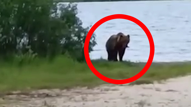 Жители микрорайона Лимбяяхи встретили на берегу реки медведя. ВИДЕО