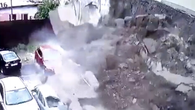 Мэр Кисловодска опубликовал видео обрушения стены на четыре автомобиля