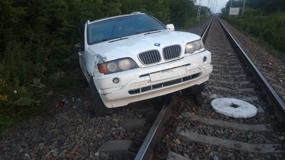 Под Новосибирском водитель BMW X5 бросил машину на железнодорожных путях