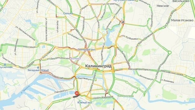 Калининград вечером в среду, 26 июля, встал в пробках. Об этом говорят данные сервиса «Яндекс. Карты».