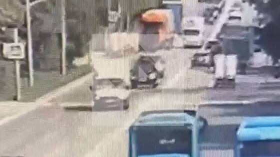 Момент ДТП с Bentley и грузовиком в Москве попал на запись с камер наружного наблюдения. Видео с места публикует РЕН ТВ.