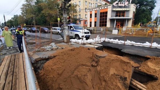 Утром 1 августа в соцсетях появились фотографии провала асфальта на месте, где ремонтируют теплосети. Дорожное покрытие начало обваливаться на правой полосе движения по улице Советской.