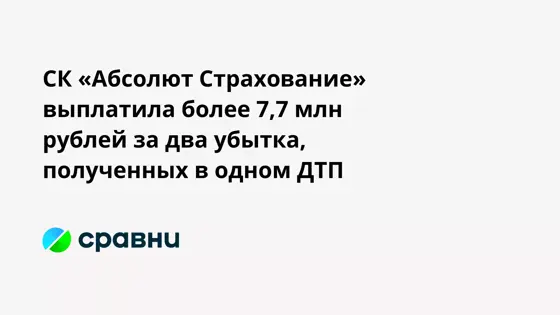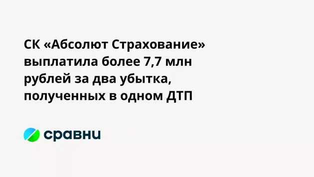 СК «Абсолют Страхование» выплатила более 7,7 млн рублей за два убытка, полученных в одном ДТП