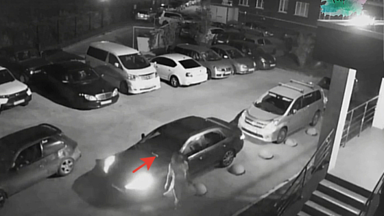 На видеокамерах было зафиксировано, как проходящая мимо женщина положила овощи на капоты двух припаркованных автомобилей.