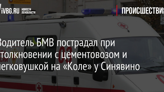 Водитель БМВ пострадал при столкновении с цементовозом и легковушкой на «Коле» у Синявино