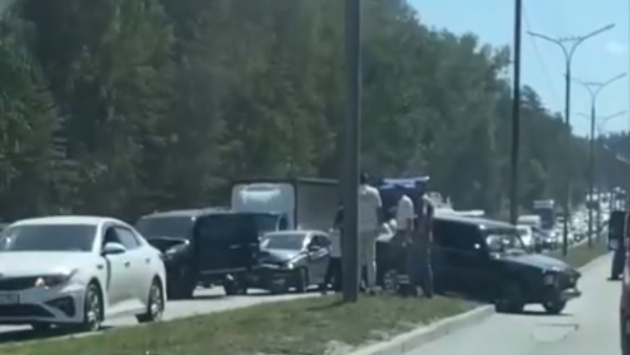 Пробка на Бердском шоссе в сторону Новосибирска образовалась из-за массового ДТП