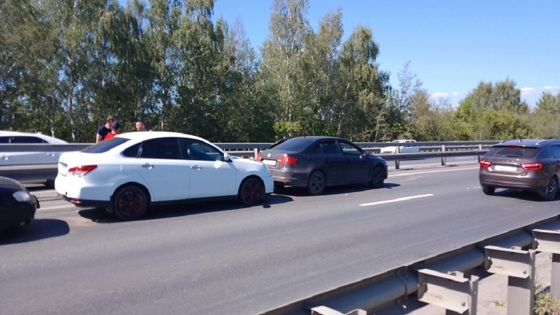 Судя по информации от водителей, в этот раз авария тоже достаточно легкая, однако в пробке постоять на жаре придется.