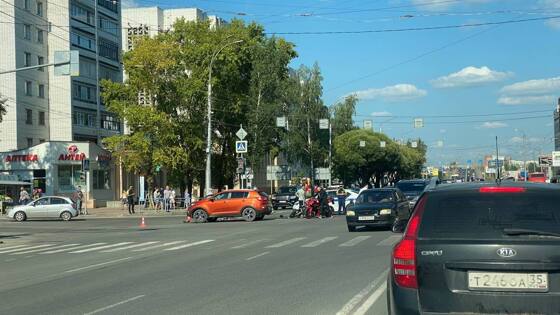 В Вологде водитель автомобиля сбил мотоциклиста, выполняя запрещенный поворот