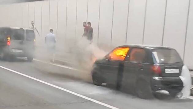 Загоревшийся внутри тоннеля в Москве автомобиль попал на видео