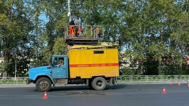 Сегодня на пересечении Октябрьского проспекта и ул. Карла Маркса автомобиль с манипулятором зацепил контактную сеть, в результате чего произошел обрыв.