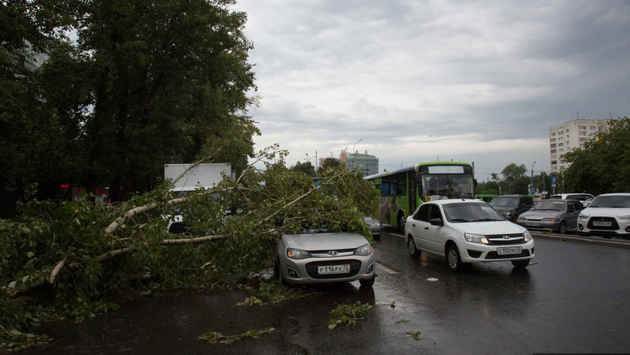 В одном из дворов Челябинска из-за шторма дерево повредило легковую машину. Очевидцы сообщают, что автомобиль был припаркован вблизи дома 66А на Молодогвардейцев.