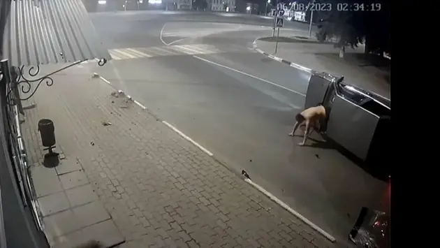 ДТП произошло накануне на улице Кирова. На видеозаписи с моментом аварии видно, что серый автомобиль Lada движется по улице на большой скорости. В повороте автомобиль налетел правым передним колесом на бордюр и перевернулся. После этого через проем лобового стекла вылез человек, опираясь на руки.