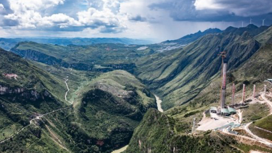 Продолжается строительство моста через большой каньон на юго-западе Китая