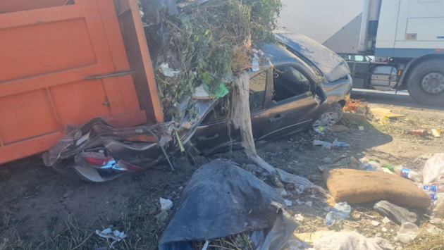 На трассе в Самарской области мусоровоз раздавил легковушку