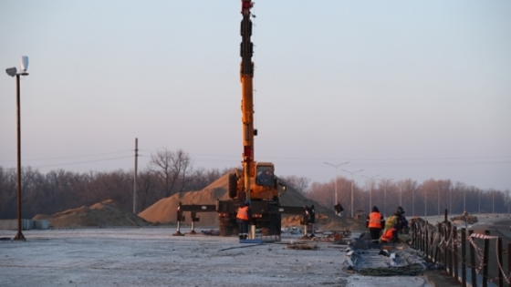 На юге Волгограда на Марийском путепроводе начали заливку бетонного основания